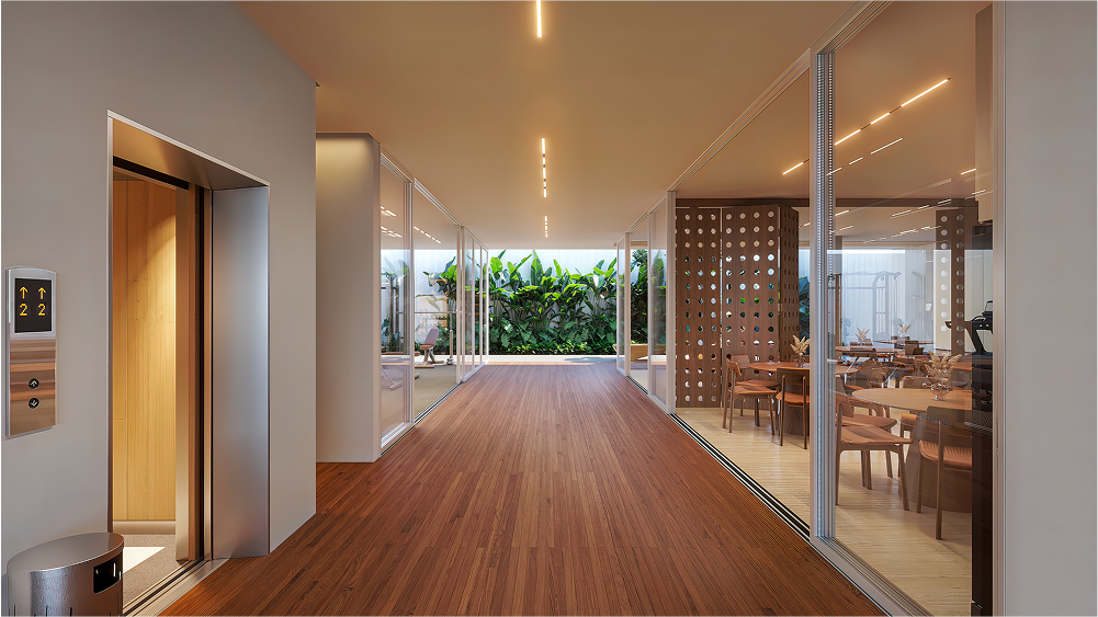 São apenas 32 unidades em um prédio com 8 andares, fachada com materiais naturais, ventilação cruzada e plantas flexíveis, todas banhadas por luz natural.